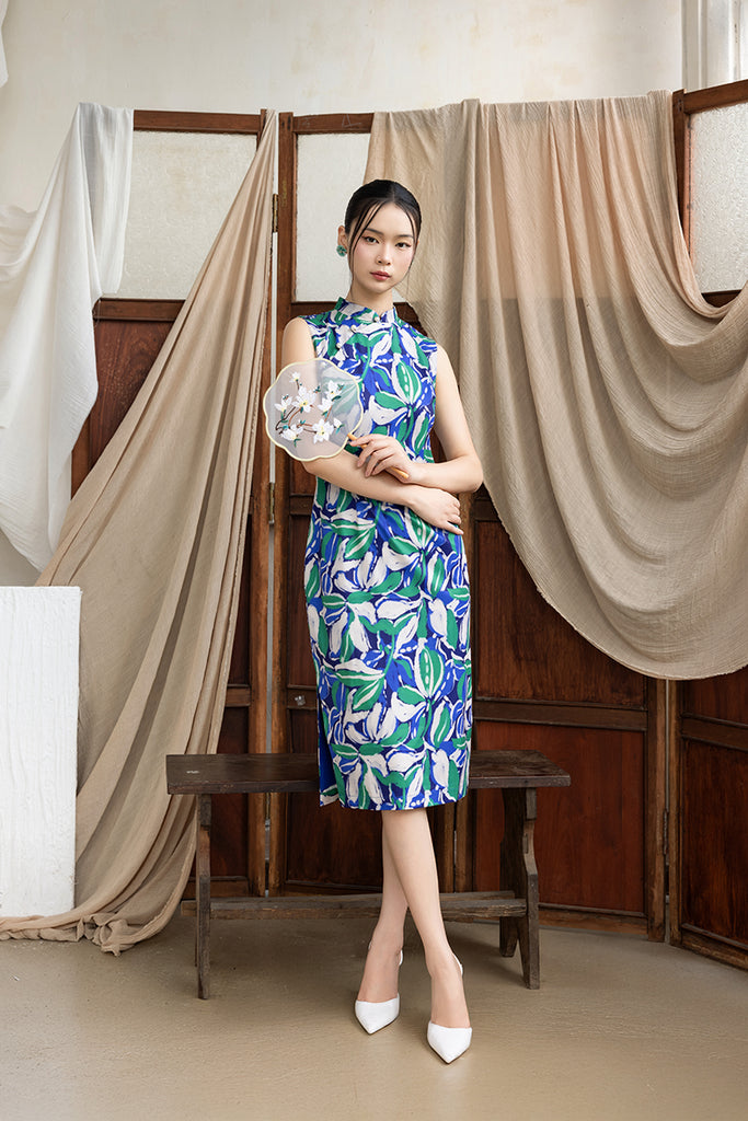 Nancy Cheongsam - Blue Green Leaves